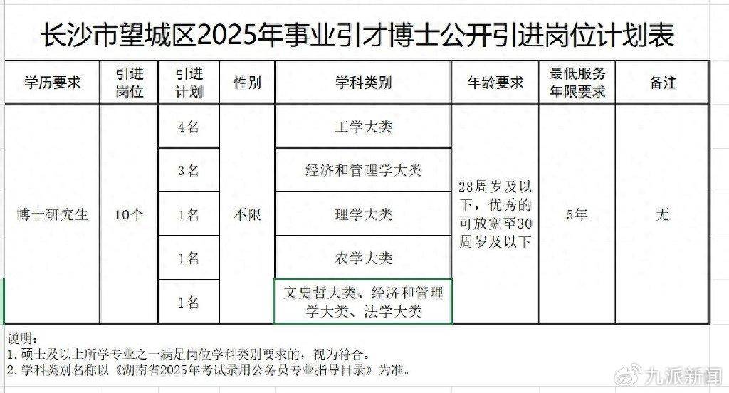 近日,长沙市望城区发布《2025年职业引才博士公开引进公告》欧洲杯体育,公告中的岗亭遐想表提到,年齿条目为28周岁及以下,优秀的可放宽至30周岁及以下。