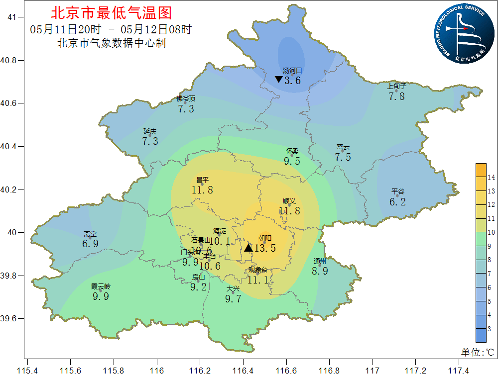 11日20时到12日08时,南郊不雅象台最低气温11.1℃(12日04:45)
