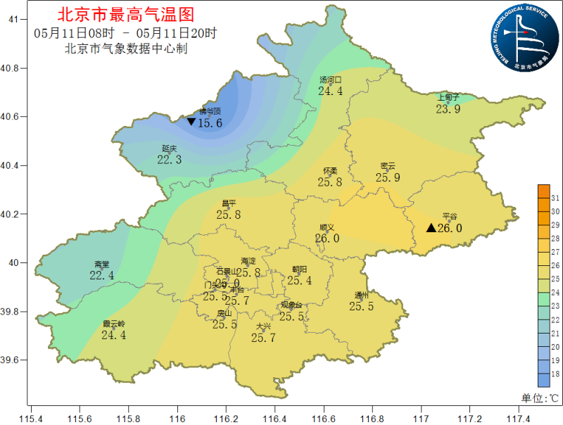 11日08时到11日20时,南郊不雅象台最高气温25.5℃(11日15:24)