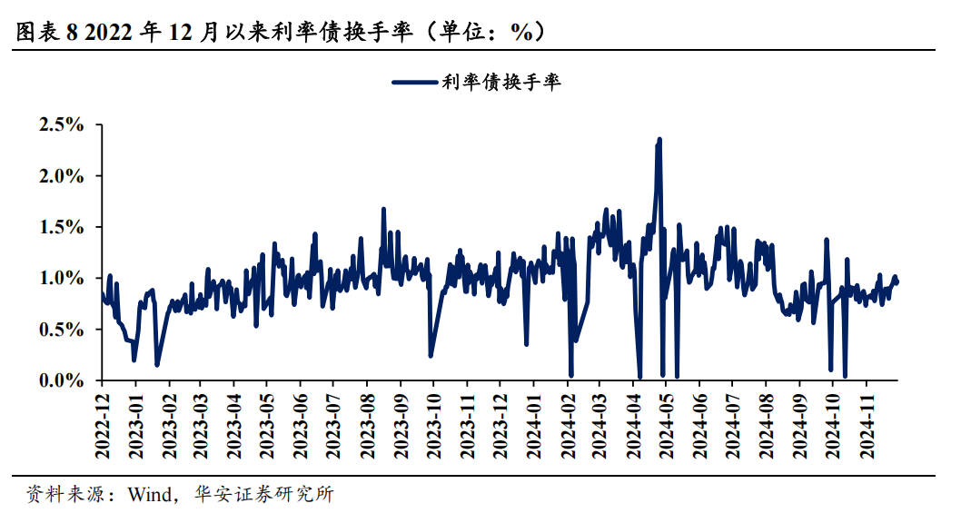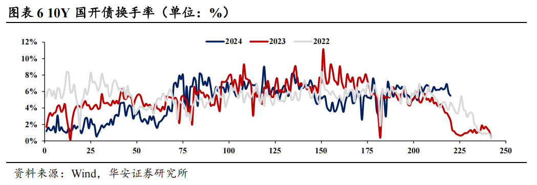 30Y国债换手率飞腾,11月29日换手率录得1.82%,较11月22日飞腾0.20pct,较周一飞腾0.18pct,周平均换手率为1.78%;利率债换手率较上周飞腾,11月29日换手率录得0.97%,较11月22日飞腾0.08pct,较周一飞腾0.01pct;10Y国开债换手率较上周下跌,11月29日换手率录得5.48%,较11月22日下跌0.94pct,较周一下跌0.76pct。