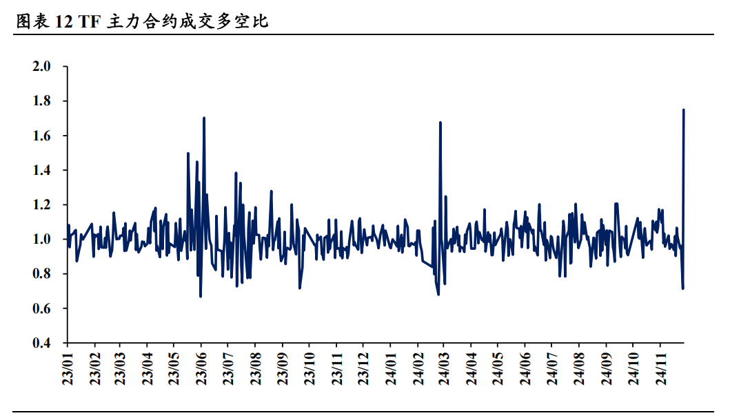 国债期货方面,本周T2412、TS2412、TL2412合约成交多空比下跌,TF2412合约成交多空比飞腾。完了11月29日,TL2412、T主力成交多空比阔别为0.43、0.21;TS2412、TF2412合约多空比阔别为0.77、1.75。