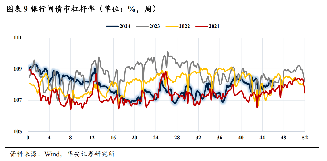 从资金面来看,近期杠杆率下跌。完了11月29日,银行间债市杠杆率升至107.92%,质押式回购成交量为6.0万亿元,隔夜成交占比升至91.57%。
