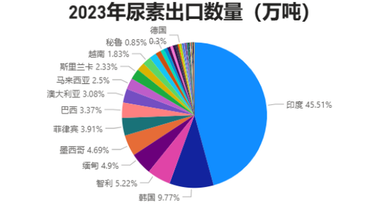 图1:2023年我国尿素出口列国占比(万吨)