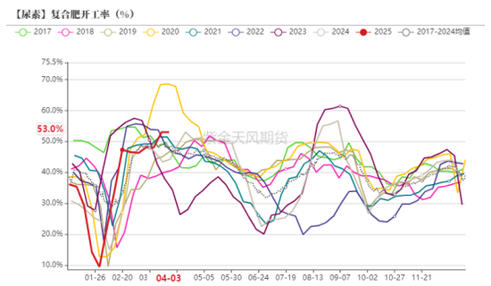 农业需求近期见顶回落,复合肥开工率或从高位下滑,部分复合肥企业采购或于4月10日告一段落,但国外肥料价钱仍是偏高的情况下,复合肥出口数目大幅增多,本年复合肥的产量已明显高于长年同期,目先运转复合肥产量同比增长的成分仍然存在,展望4月下旬,尿素卑鄙或仍有刚需采购。