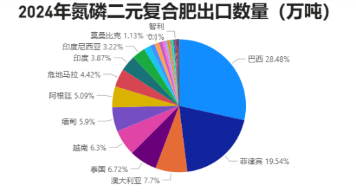 图2:2024年其他氮、磷两种元素复合肥出口数目(万吨)